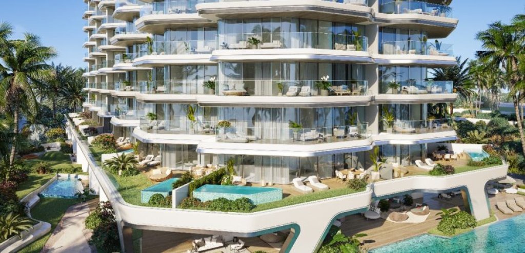 Sunshine Bay by Source of Fate Properties presents a stunning 12-story waterfront development inspired by sailing vessels. This architectural masterpiece offers studios to 2-bedroom apartments of up to 2,300 sq. ft, featuring private pools, fitted kitchens, and garden access. With two 154-foot cascading gardens, infinity pools, and premium amenities, residents enjoy direct views of Wynn Resort and pristine beaches.
