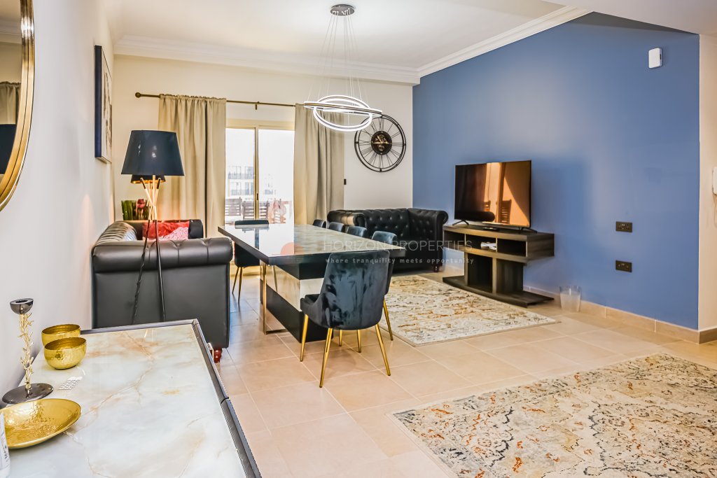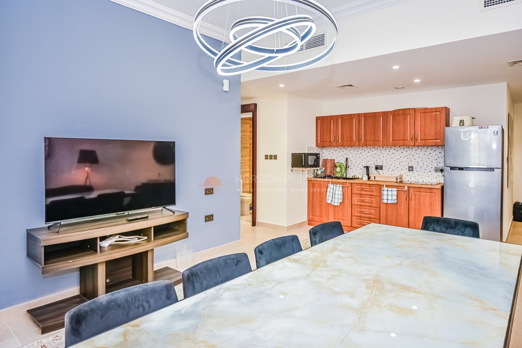 Discover a unique beautifully upgraded and fully furnished 2-bedroom apartment in the heart of Al Hamra’s sought-after Marina Residences. Perched on a high floor, this elegant home offers stunning community views, with glimpses of the tranquil lagoon and the exclusive Falcon Island.Designed with comfort in mind, the apartment features stylish interiors, quality furnishings, and a spacious open-plan layout. The upgraded kitchen flows seamlessly into the living and dining areas, creating a warm and modern space ideal for everyday living or entertaining.