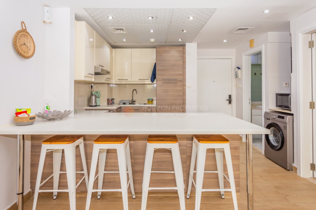 Welcome to your upgraded 1-bedroom oasis nestled in the prestigious Marina Residences, located in the vibrant Al Hamra Village. This stunning apartment offers a perfect blend of luxury, convenience, and serenity, making it an ideal choice for those seeking a sophisticated coastal lifestyle.Upon entering, you are greeted by a meticulously designed living space that exudes modern elegance. The open-plan layout seamlessly integrates the living and kitchen areas, creating a spacious and inviting atmosphere. High-quality finishes, including premium flooring and contemporary fixtures, elevate the ambiance of every room. This is a great investment opportunity as it is currently being used for Airbnb and performing very well.